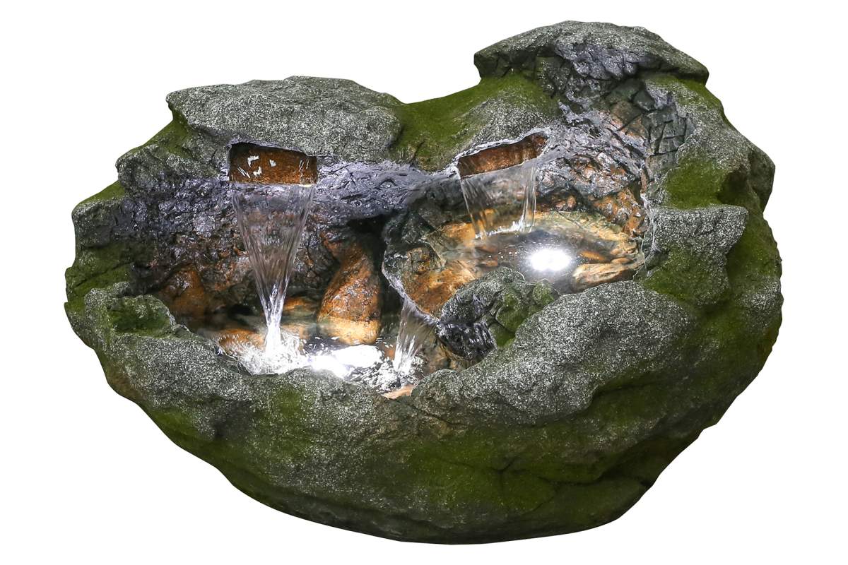 Introducing the Rock Garden Fountain with Polyresin Finish and Lights - a captivating centerpiece that effortlessly enhances the charm of your outdoor space. Immerse yourself in the soothing melody of cascading water and the enchanting glow of integrated lights with this exquisite fountain.