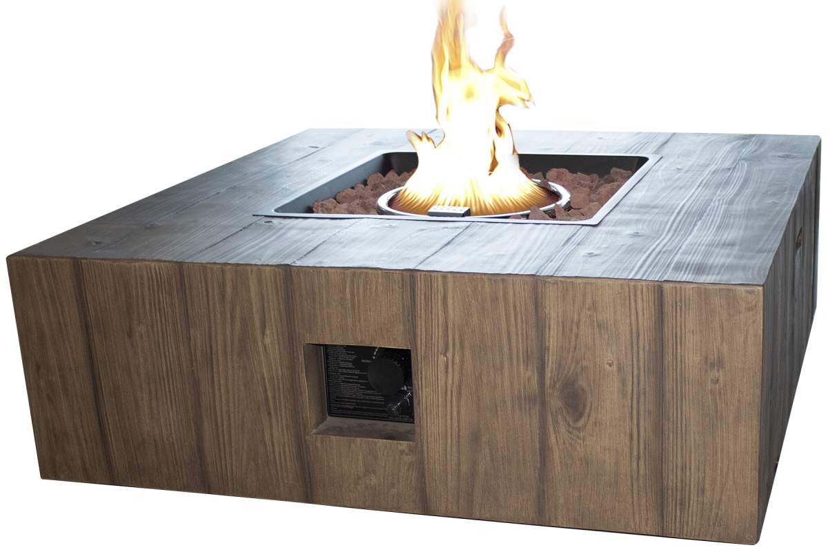 - Design: This fire pit features a square silhouette with a wood color finish, adding a natural and rustic look to your outdoor decor.