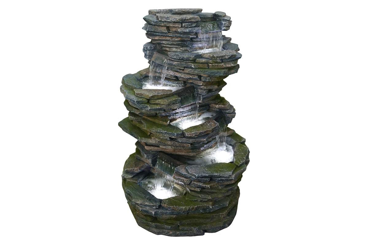 Introducing the Rock Garden Fountain with Polyresin Finish and Lights - a mesmerizing focal point that adds elegance and tranquility to your outdoor haven. Immerse yourself in the gentle melody of cascading water and the enchanting radiance of integrated lights with this captivating fountain.